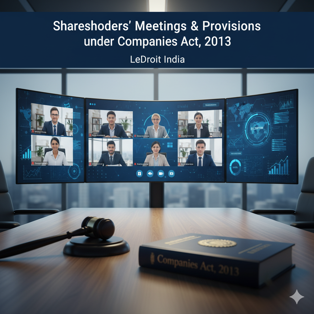 Shareholders’ meetings are essential for corporate governance, ensuring accountability, transparency, and strategic decision-making. The Companies Act, 2013, provides a strong legal framework covering AGMs, EGMs, voting mechanisms, and technology-driven participation. Despite challenges such as quorum issues and fraudulent proxies, judicial pronouncements continue to shape corporate governance.