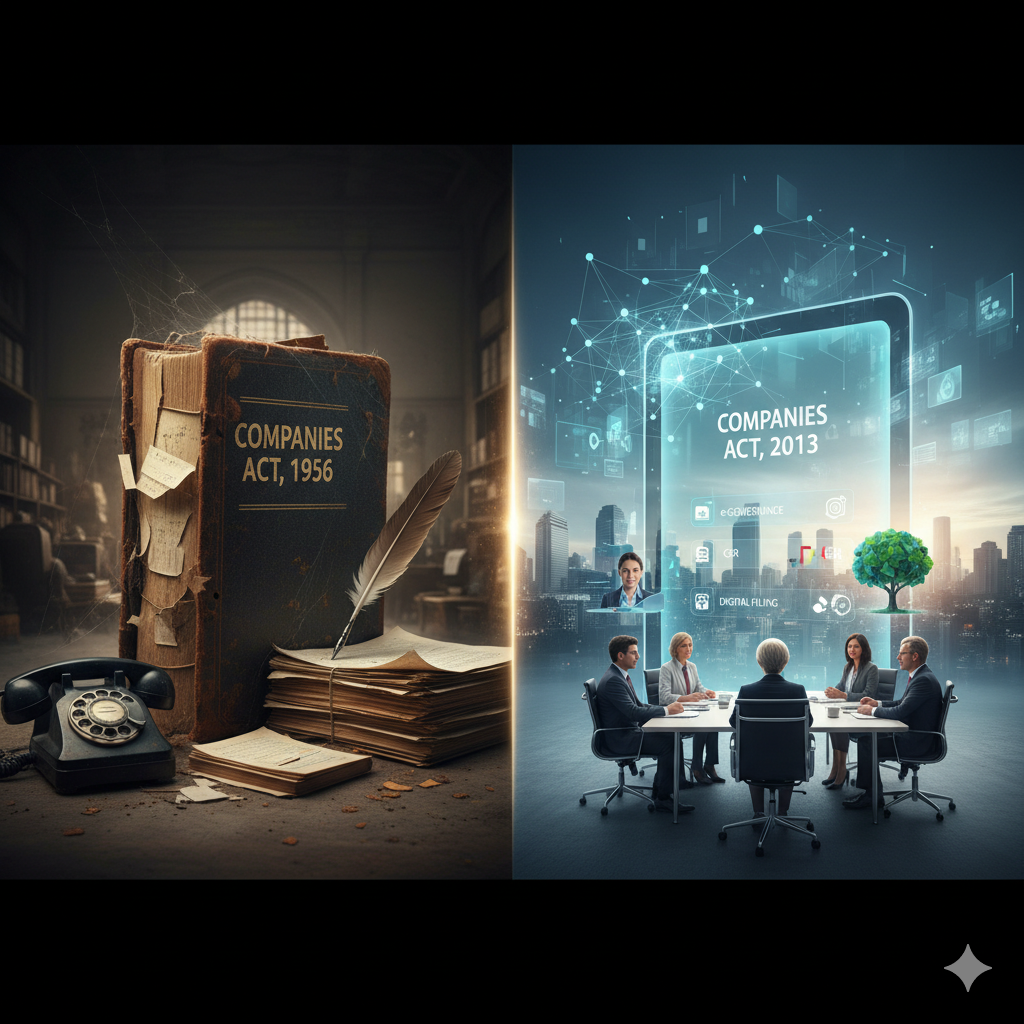 The transition from the Companies Act of 1956 to the Companies Act of 2013 marks an important milestone in India’s corporate regulatory structure. A rapidly changing business environment, growing globalization, and the need for better corporate governance and responsibility drove this evolution. The Companies Act of 1956 was the foundation of corporate regulation for decades, but it fell short in tackling current concerns such as technology improvements, investor protection, and sustainable practices. In contrast, the Companies Act of 2013 implemented broad reforms to bring India’s corporate regulations in line with global standards. This article examines the fundamental differences between these two pieces of legislation and their ramifications for businesses, stakeholders, and the economy.