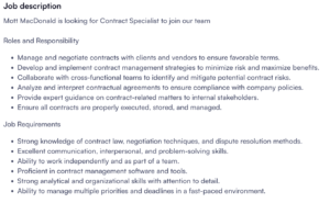 Below are a few screenshots of legal roles at top companies, each clearly highlighting the growing importance of contract drafting and contract management skills.