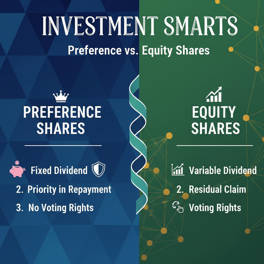 Equity shares represent ownership and have potential for appreciation, while preference shares are akin to fixed-income instruments. Companies use preference shares as a hybrid between debt and equity to manage costs and preserve control. From an investor’s viewpoint, preference shares provide steady returns but lack upside participation during high-profit years.