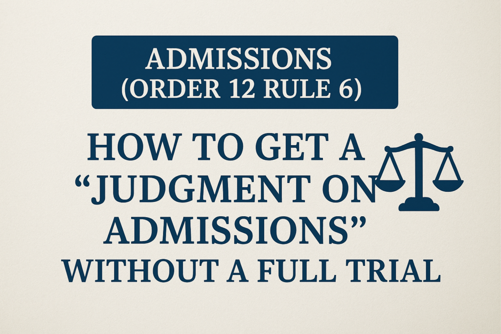 - Family Property Cases: In partition suits and family property disputes, admissions often play a crucial role in narrowing the scope of controversy. Parties may concede certain relationships, shares, or ownership interests, even while contesting other aspects of the claim. Courts can act on these admissions to deliver partial judgments, thereby settling undisputed portions of the dispute while allowing trial to proceed on contested issues. This calibrated use of Rule 6 reduces the complexity of partition suits, ensures that admitted rights are recognized without delay, and streamlines the trial by focusing only on genuine disputes. In this way, Rule 6 serves both efficiency and fairness in family property cases, balancing the need for speedy justice with the protection of substantive rights.