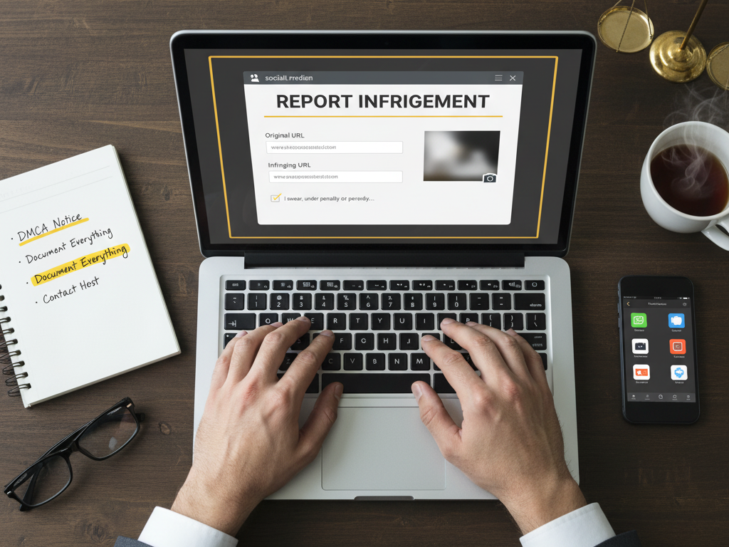 • On Instagram/Facebook: You can report posts directly or use their dedicated “Intellectual Property” help forms.