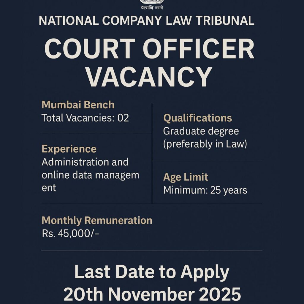 National Company Law Tribunal (NCLT) has invited applications for Court Officer on a contractual basis.